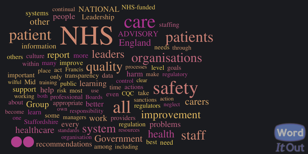 Well, one place to start perhaps is the text of the three reviews of the NHS recently completed by Francis, Keogh and Berwick.